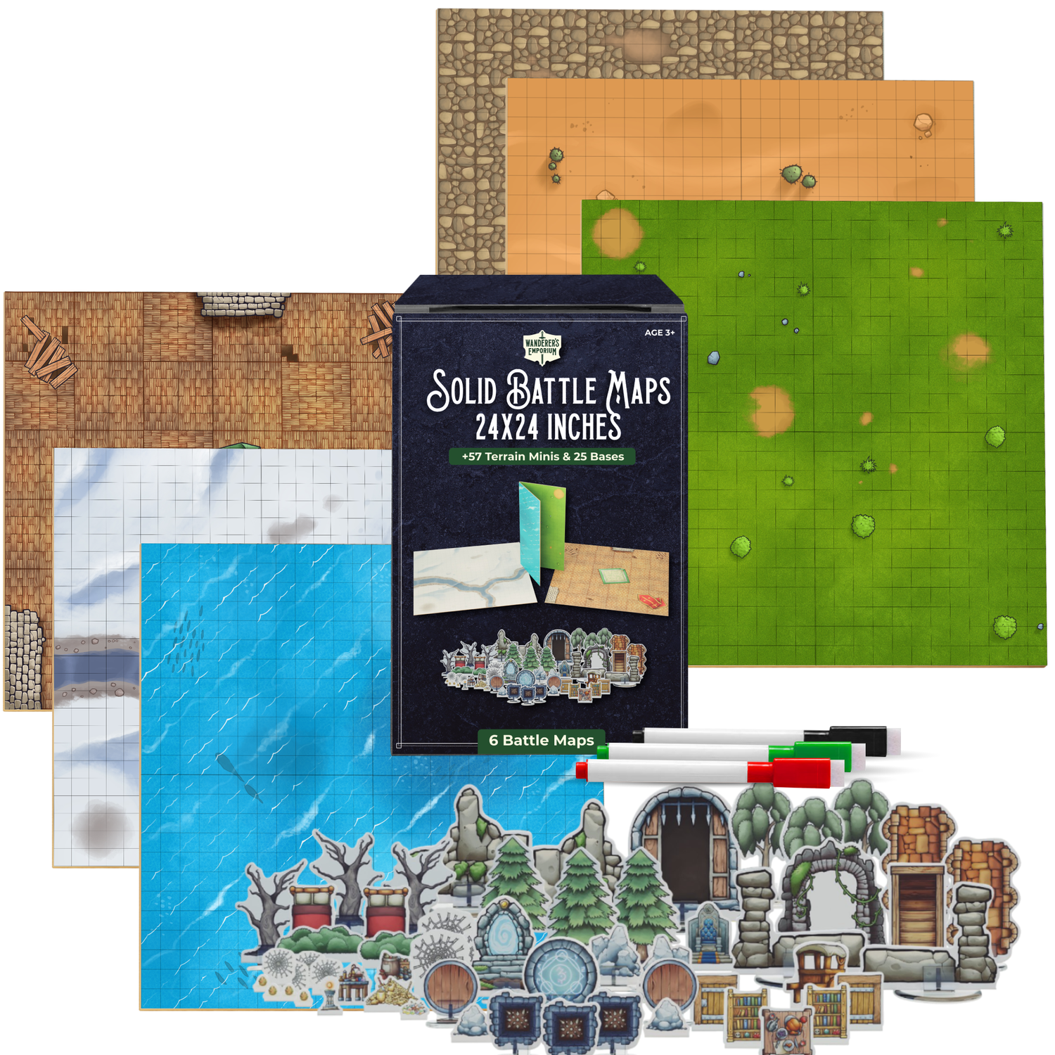 3 Solid Boards with entire 57 piece Terrain Pack included